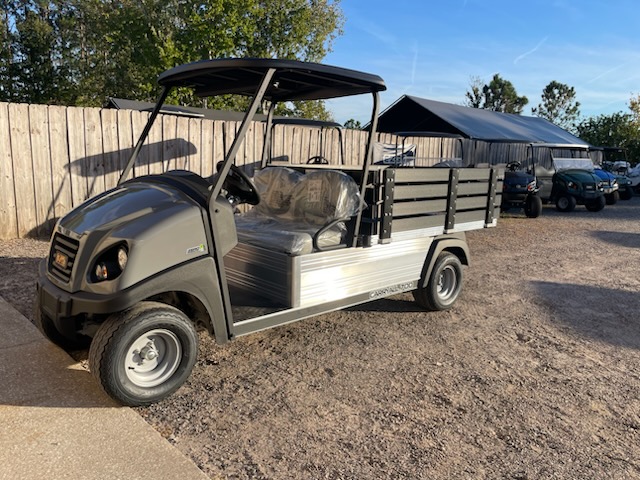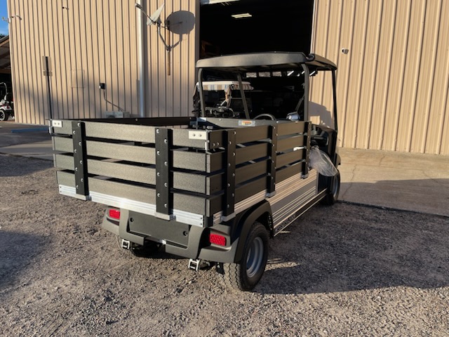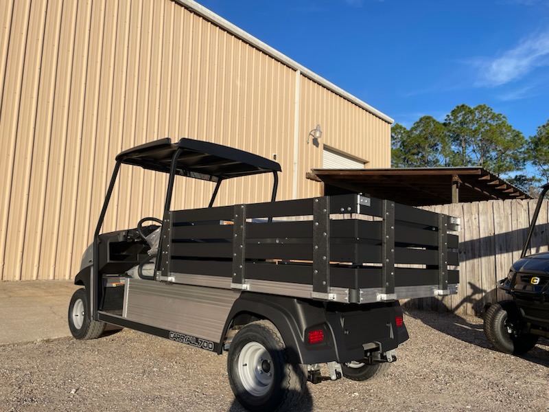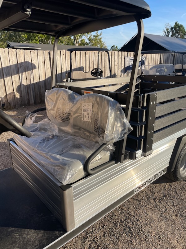 New 2026 Club Car Carryall 700, Stake-Sides Kit, Standard Duty 6v Batteries, On-Board Hi-Freq Charger, Instrument Panel – Electric* color: Dark Grey, seat: Standard Grey, Black Top, Standard Halogen Headlights, tail lights, brake lights, turn signals, horn, Key:1B, Steering Wheel w/ Memo Clip, hinged windshield, 5 panel mirror, Extra Heavy-Duty 3-Leaf Spring Front Suspension – 4 Wheel Brakes, and Premium 6-Ply Rated Tires – 20×10-10. $17,919.00