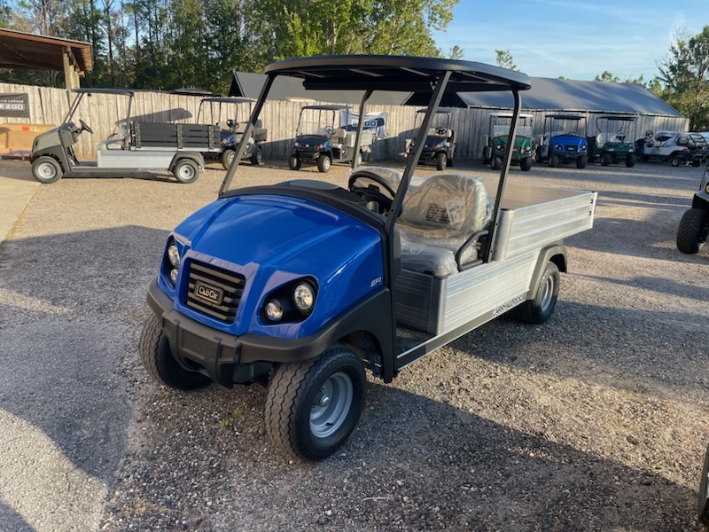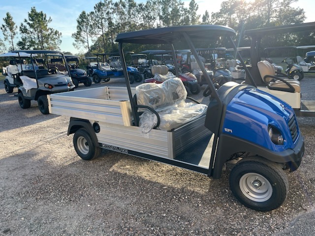 New 2026 Club Car Carryall 700, Gas, Long Cargo Box, Instrument Panel – Gas* color: Bright Blue, seat: Standard Grey, Black Top, Standard Halogen Headlights, tail lights, brake lights, turn signals, horn, Key:1B, Steering Wheel w/ Memo Clip, hinged windshield, 5 panel mirror, Extra Heavy-Duty 3-Leaf Spring Front Suspension – 4 Wheel Brakes, and Premium 6-Ply Rated Tires – 20×10-10. $17,999.00