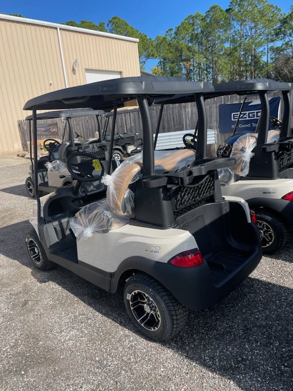 New 2026 Club Car Onward 2 passenger, non-lifted, High Performance Lithium Ion Standard Range, color: Metallic Cashmere, seats: Premium Camello, Canopy Top: 54″ Black, Factory Front LED headlights with LED accent running lights, rear LED tail & brake lights, front & rear turn signals, state of charge, horn USB-A, USB-C, Instrument Panel with 7″ digital display, Upper Center Storage Screen Glove Box, Lower Center Storage LH & RH Wireless Charger, Standard Side Storage for golf ball & golf tee holders, consumer premium comfort grip steering wheel with scorecard clip, premium floormat, 10″ 0-offset Mercury wheel – 205/55-10 Loadstar tires – Gloss Black and charger. (Uncommon Key: 1A) $13,543.00