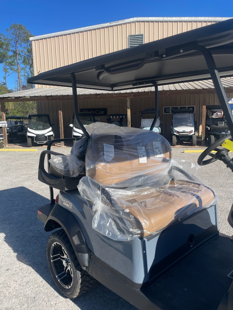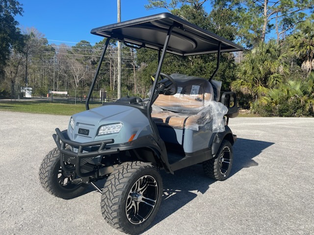New 2026 Club Car Onward 4 passenger, Lifted, High Performance Standard Range Lithium Ion, color:Metallic Pearl Mist Grey, seats: Premium Camello, canopy : Black with passenger side front canopy grab handle, Factory front LED headlights with LED accent running lights, rear LED tail & brake lights, front & rear turn signals, state of charge meter, horn USB-A USB-C, front cup holders, premium comfort grip steering wheel, Instrument Panel with 7″ Digital Display, Upper Center Storage Screen Glove Box, Lower Center Storage LH & RH Wireless Charger, Side Storage Glove Box Doors, Standard Floormat, Front & Rear Fender Flares, 14″ Gloss Black and Machined Mercury wheel with 215/50R-14 Steel-Belted Radial Klever Tire, brush guard, uncommon key:1A and charger.