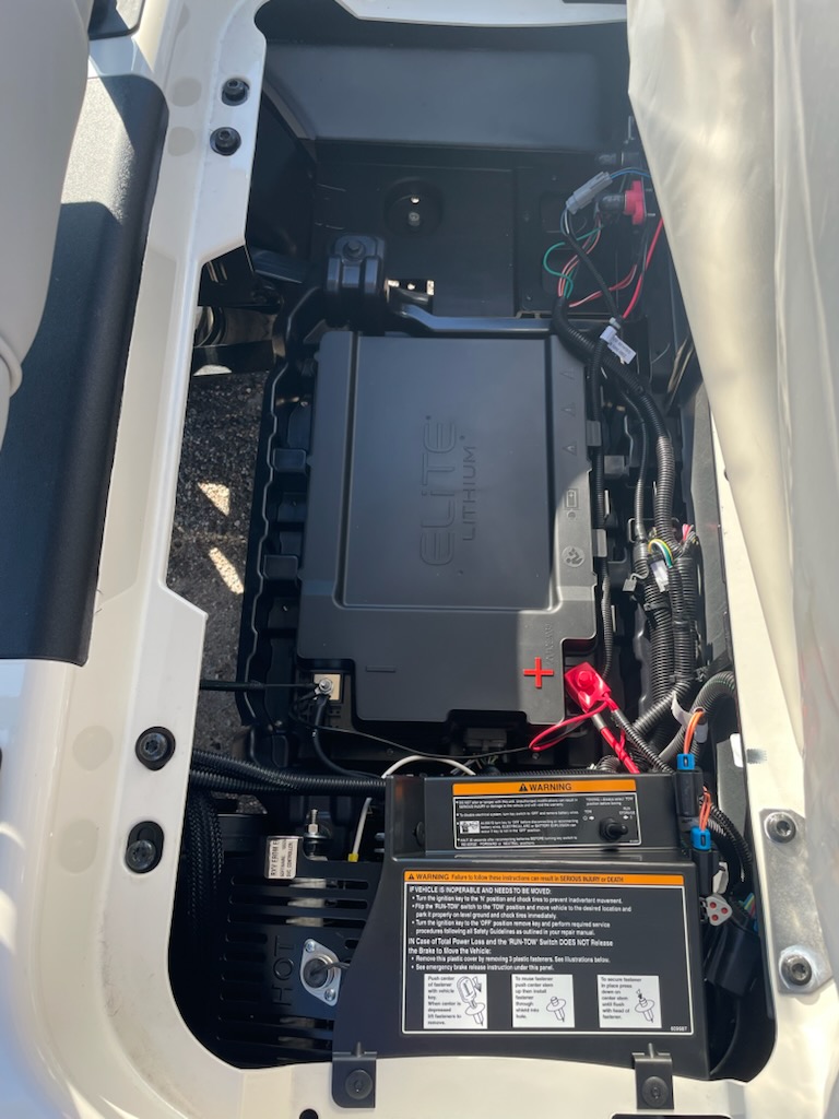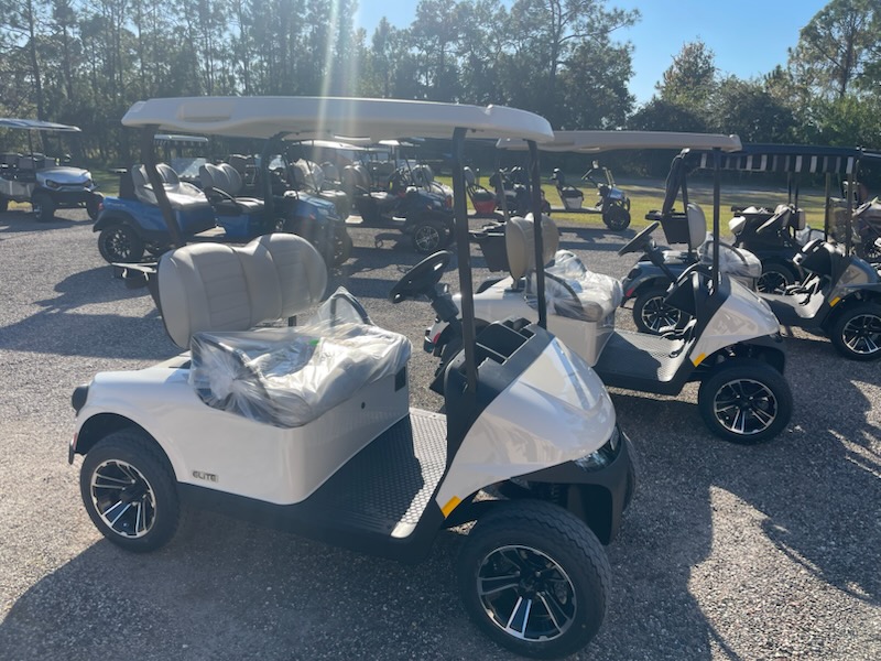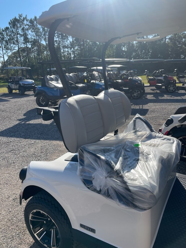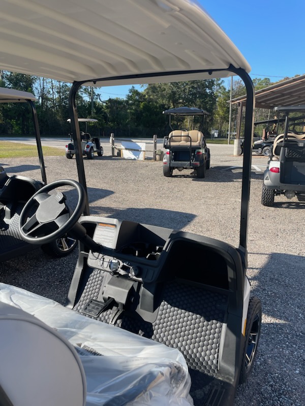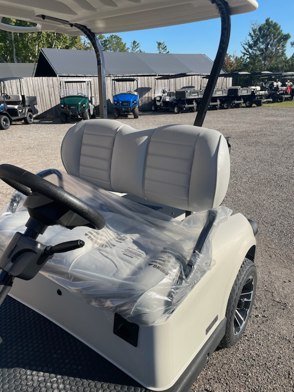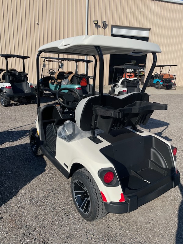New 2026 E-Z-GO RXV Freedom, ELiTE 2.2 Single Pack Lithium Ion, color: Ivory, seat: Premium Grey, top: 54″ Oyster, convex rear view mirror, factory LED light kit, head lights, tail lights, brake lights, turn signals, horn, dual USB, Key: 213, front cup holders, premium steering wheel with score card clip, sweater basket, golf bag holders, 20×9-in Hole-N-One Tire on 12-in Rogue Alloy Wheel and charger. $12,022.00