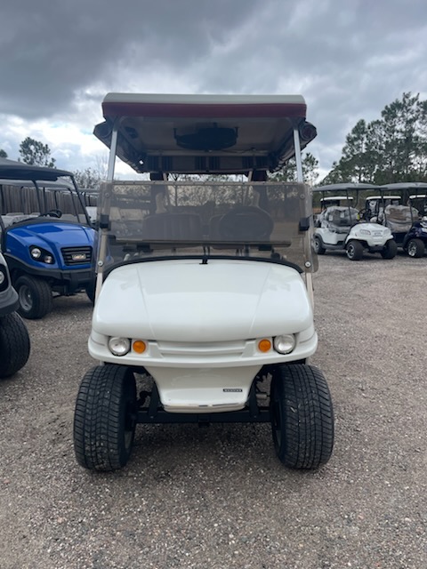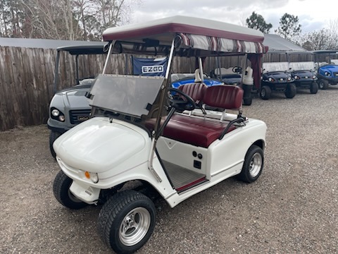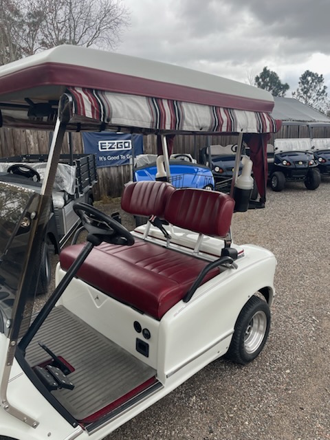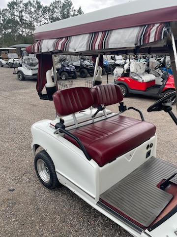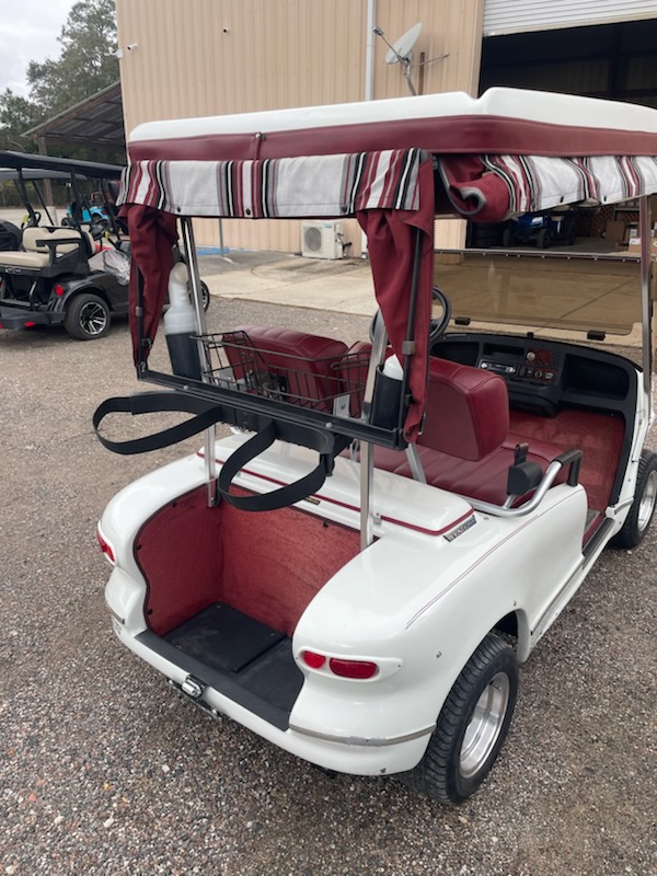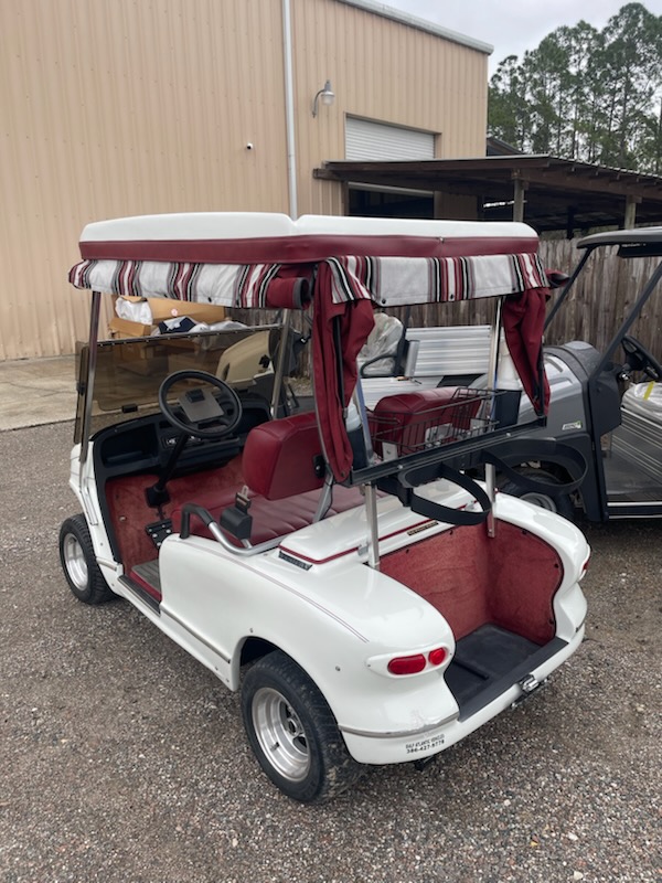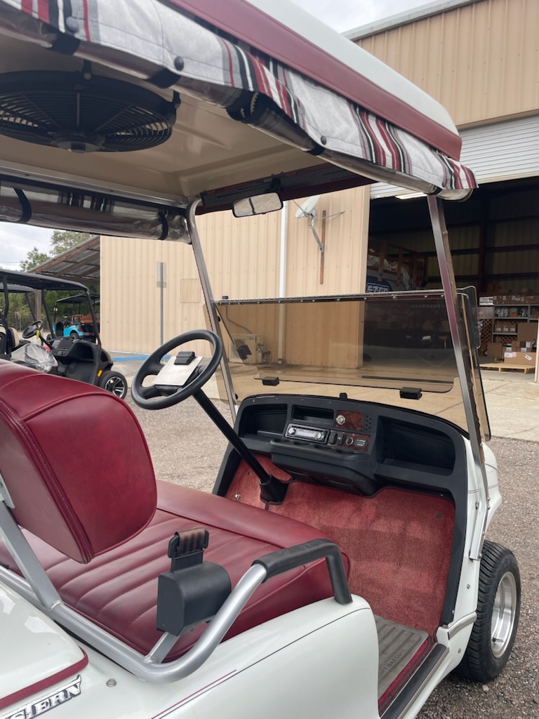 Used 2005 Western, 2 passenger, electric (6-6v new batteries) color: White, seat: Red, top: White, tinted folding windshield, curtains with golf bag cover, overhead fan, golf bag holders, driver side sand bottles, passenger side sand bottles, rear view mirror, 205/50-10 and charger. $4,695.00